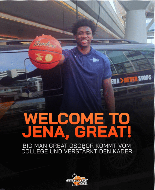 Tras finalizar su etapa en la NCAA, Great Osobor, nacido en 2002, decidió dar un paso audaz en su carrera al unirse al Science City Jena, un equipo que acaba de ascender a la Bundesliga alemana. Este cambio representa no solo un nuevo desafío, sino también una oportunidad para mostrar su valía en un entorno altamente competitivo.