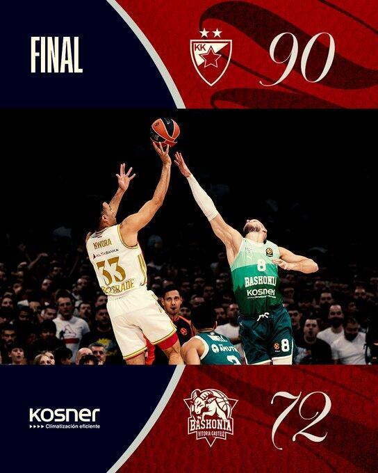 Estrella Roja 90 - 72 Baskonia, resumen y clasificación Euroliga