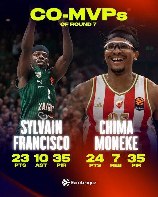 Sylvain Francisco, base del Zalgiris Kaunas, y Chima Moneke, ala-pívot del Estrella Roja de Belgrado, fueron los protagonistas. Ambos lograron un impresionante 35 créditos de valoración en sus partidos, un claro reflejo de su impacto en el juego.
