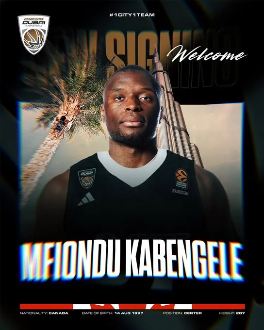 El Dubai Basketball Club ha anunciado la incorporación de Mfiondu Kabengele con un contrato de dos temporadas, un movimiento que subraya las ambiciones del club en su debut en la Euroliga. El ala-pívot canadiense de 28 años y 2,06 metros de altura llega a Dubai tras una temporada excepcional con el Reyer Venezia en Italia.