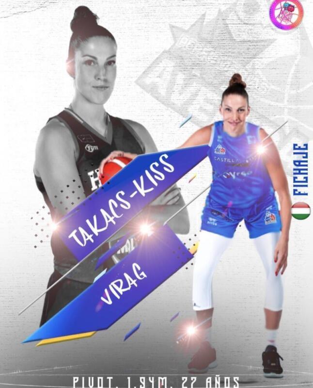 Virag Takacs-Kiss es una pívot de 28 años proveniente de Hungría, que ha destacado en el baloncesto europeo por su versatilidad y habilidades en la cancha. Con una altura de 1,94 metros, Kiss combina envergadura con agilidad, lo que le permite jugar tanto de espaldas como de cara al aro, convirtiéndola en una jugadora difícil de marcar.