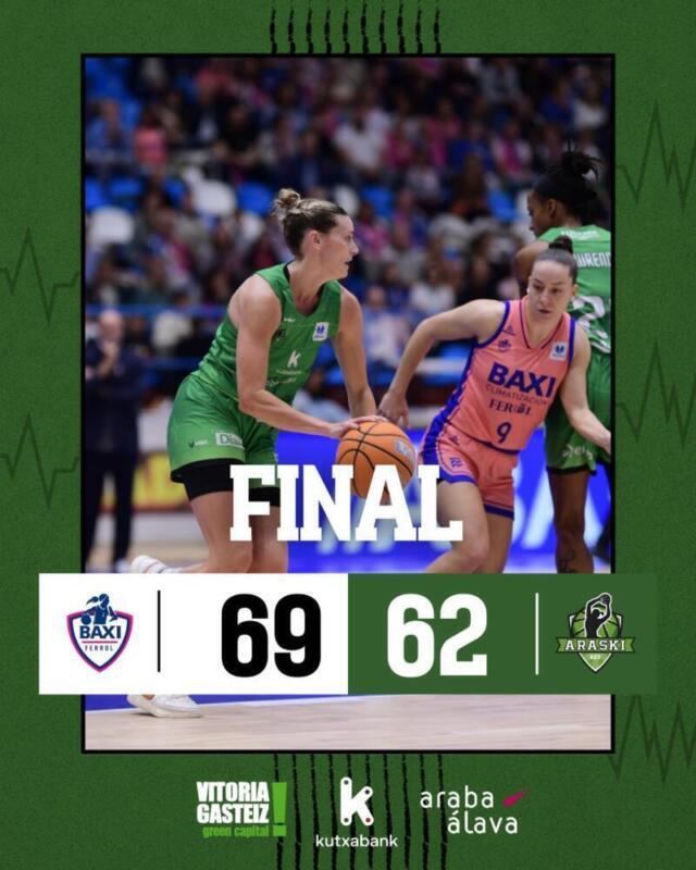 El pasado domingo, el Baxi Ferrol se enfrentó al Kutxabank Araski en el pabellón de A Malata, donde se vivió un partido que estuvo marcado por la tensión y la competitividad. Con un marcador final de 69-62, el Baxi Ferrol no solo logró la victoria, sino que también mostró su capacidad de resistencia y estrategia ante un rival que no se lo puso fácil.